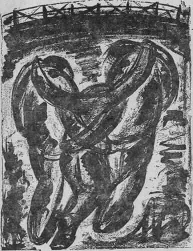 We beven nog van angst en ingehouden woede, wanneer we, na in den gemeenschappelijke emmer, die voor den ganse nacht dienst moet doen, onze behoeften voldaan hebben, onze schaamte over onze gekwetste menselijke waardigheid onder het deken van onze kooi verbergen... In onze armelijke slaapstee, met onze deernis om het lot als enige troost, vertrouwen we ons leven toe aan onze laatste Hoop, God van Goedheid die ons niet verlaten zal!... En daar zijn ze : de luizen! Ongemerkt hebben ze bezit genomen van onze lichamen deze vieze, vuile, rosachtige en walgelijke beestjes... « We moeten de kelk tot den bodem ledigen »... 's Middags en 's avonds, echte kloppartijen op onze aanranders; meester worden we ze echter niet! Alleen kunnen we trachten de plaag te beperken, want zoolang we hemden (?) van het kamp moeten dragen, breidt de plaag zich gestadig uit. Inderdaad krielt het van niet gedode larven in deze kledij en onze lichaamswarmte biedt een welgekomen broeikas voor hun aangroei... De huid geraakt overdekt met zweren, pestbuilen en etterende wonden... Hoe kan het andere op dit zoo geschikt kweekterrein : volledig gebrek aan hygiënische voorzorgen, zonder zeep, in een verpestende lucht van transpirerende lichamen, van het zoutloog der urine, de excretie der diarreelijders, midden walgelijke wonden, midden fluimen van teringlijders, totaal onderkomen... Paul E., Georges S., Jules L., met twee of drie anderen T, zijn tot nog toe het meest aangetast; hun handen lichaam en hoofd staan overdekt met zweren. Lucien N., lijdt van een pijnlijken pestbuil aan de schouder die, bij gebrek aan zorgen, slecht kan verlopen. Daniel L., is er echter wel het ergste aan toe. Het been vertoont, op twee plaatsen, diepe zweren, zwartachtige wonden, die een onnoemlijke reuk verspreiden en voor amputatie doen vreezen. En allee zonder degelijke verzorging. Ja, soms wat iodex, maar och, het is als plaaster op een houten been. De enige remedie : gebrul en vuistslagen want : « zweren genezen best met een goeie zweepslag ». Zaterdag, 10 April... De Zaterdag te Breendonk is de meest welgekomen dag van gans de week. 's Namiddags is er alvast rust (de Zondag wordt slechts in principe als een rustdag beschouwd). Te 11 u., na een verkorten halven dag arbeid, verlicht door het vooruitzicht 'van een rustige namiddag, gaan we naar het stortbad! Ah! het fris gevoel van lopend water over gans het lichaam. We staan met een 60tal tegen elkaar gedrongen onder den gieter van het stortbad, maar wat geeft dat! De weldoende streling van het water door-stroelt de spieren en lenigt onze lichamen. Te korte stonden, helaas! want de 400 geïnterneerden van het kamp moeten allen in één uur tijds onder het stortbad zijn geweest! Eenmaal het « diner » geëindigd, maken wij het ons zoo gemakkelijk mogelijk rond de tafels, zij die geen schabel kunnen bemachtigen leggen zich, niettegenstaande het streng verbod, op hun strozak neer... Namiddag vol herinneringen... In dromen trekken zij aan onzen geest voorbij uit de verste hoekjes van ons geheugen opdagend, waar zij sluimerden als de as van 't verleden... De duurbare wezens bevinden zich nu aan onze zijde, door hun tegenwoordigheid beslag leggend op heel ons denken en doen. |