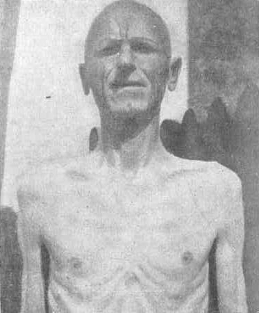 De kameroverste riep : « Achtung ! » wat voor ons het teken was, dat we aan de voet van ons bed in de houding moesten gaan staan. Daar we geen tijd hadden om ons ook maar enigszins te kleden, ontvingen we de scheldwoorden en slagen van de twee dronken schurken in een beschamend en vernederend nachtgewaad.