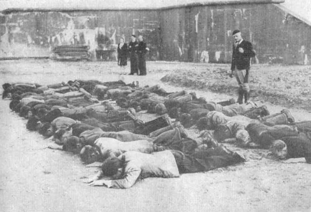 Hun werkwijze is meestal de volgende. Ze verschijnen op de plaats, waar de gevangenen aan het werk zijn en bevelen hun ruwweg: